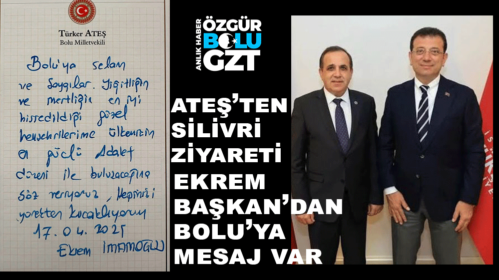 CHP Bolu Milletvekili Türker Ateş, Ekrem İmamoğlu’nu Silivri Cezaevinde ziyaret etti. İmamoğlu’nun el yazısıyla yazdığı ve Bolululara selam gönderdiği yazıyı Ateş sosyal medya hesabından paylaştı.