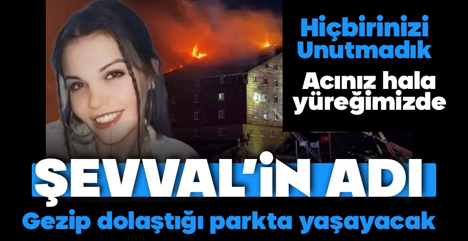 Bolu Kartalkaya'daki otel yangınında ölen 78 kişi arasında bulunan Şevval Şahin'in ismi Bartın'da gezip dolaştığı parka verilecek.