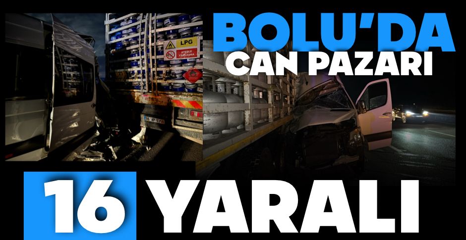 TEM Otoyolu’nun Bolu geçişinde yolcu minibüsüyle tüp yüklü kamyonun çarpışması sonucu meydana gelen kazada 16 kişi yaralandı.