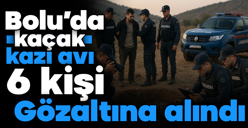 Edinilen bilgiye göre, Bolu İl Jandarma Komutanlığı ekipleri, Merkez ilçede bulunan ormanlık alanda yaptıkları denetimler sırasında kaçak kazı yaptığı tespit edilen 6 kişiyi suçüstü yakaladı. Kazı alanında yapılan incelemelerde; 1 adet jeneratör, 2 adet kürek, 1 adet kazma, 2 adet demir levye, 1 adet uzatma kablosu, 1 adet el feneri ile çeşitli kazı malzemeleri ele geçirildi. Gözaltına alınan 6 şüpheli şahıs hakkında adli işlem başlatıldı.