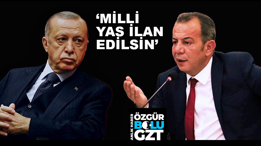Bolu Belediye Başkanı Tanju Özcan, 20 askerimizin şehit olduğu uçak kazası sonrasında yaptığı paylaşımda, “Derhal Milli Yas ilan edilmelidir. 20 askerimiz şehit oldu. Sıradan bir haber gibi geçemezsiniz” dedi.