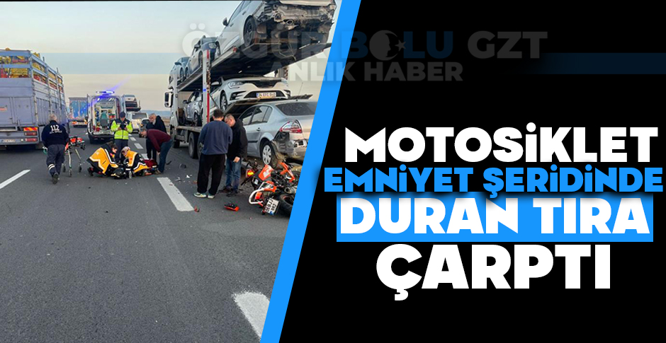 TEM Otoyolu Bolu geçişinde emniyet şeridinde duran tıra arkadan çarpan motosikletin sürücüsü yaralandı.