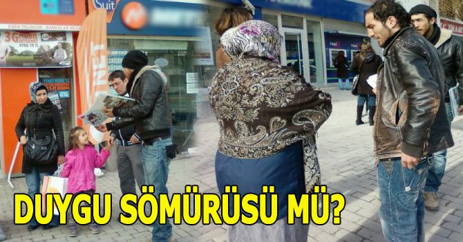 İzzet Baysal Caddesi üzerindeki kaldırımlarda yüzer metre arayla yayılmış gençler, engelliler üzerinden duygu sömürüsü yaratarak dergi benzeri broşürleri tanesi 4 liradan satmaya çalışıyorlar.