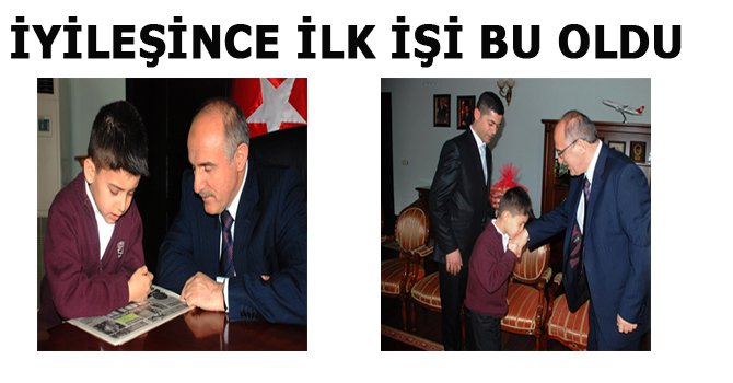 Okulda sıraya çarpıp böbreği zedelenen ilköğretim 2. sınıf öğrencisi 8 yaşındaki Özgür Özdemir, başarılı geçen ameliyatın ardından tekrar sağlığına kavuşurken, iyileşir iyileşmez Vali Özçimen’in yanına geldi. Minik Özgür ile sohbet eden ve geçmiş olsun dileklerini ileten Vali Özçimen, rahatsızlığı nedeni ile yaklaşık 1 buçuk ay okula gidemeyen 2. sınıf öğrencisi Özgür’ü mini bir sınava soktu.