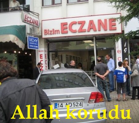 Bugün saat 12.00’da meydana gelen kazada, Hastane Caddesi’nde 14 AD 524 plakalı aracını kenara park etmek isteyen Vahide Ataman, otomatik vitesli aracınının firenine basayım derken gaza basınca, araç önce kaldırıma çıktı, ardından da Bizim Eczane’nin camlarını kırarak içeri girdi. Kazada şans eseri kimse yaralanmadı. Olayı duyan Abdullah Abat, hemen eşinin eczanesine geldi.