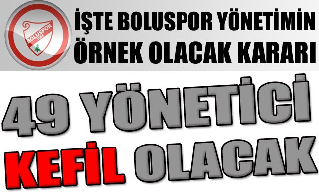 Eski yöneticilerin bu kararını saygıyla karşılayan Boluspor yönetimi İş Bankası yöneticilerini arayarak imzalarını geri almak isteyen eski yöneticilerin imzalarını geri alabileceklerini söylediler. Eski yöneticilerin imzalarını geri almak istediğini öğrenen yeni yönetim hemen kendi aralarında toplandılar ve Boluspor’un kredi borcu için yönetimde bulunan 49 kişi de kefil olmak için gönüllü oldu. Boluspor yönetiminin bu birlik ve beraberlik göstergesi hareketi banka yöneticilerini de oldukça şaşırttı. Boluspor’un 49 kişilik yönetimi Pazartesi günü borca imza atacak.