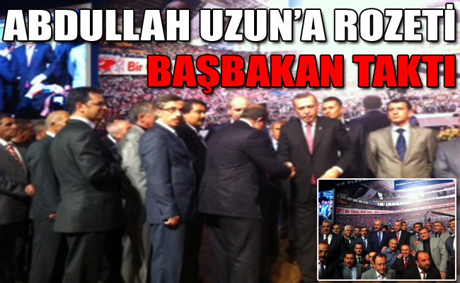Başbakan Recep Tayyip Erdoğan’ın hemşerisi ve yakın arkadaşı olan fesh edilen Has Parti’nin Bolu İl Başkanı Abdullah Uzun eski genel başkanı Numan Kurtulmuş ile birlikte AK Parti saflarına katılırken, Uzun’un rozetini Başbakan Recep Tayyip Erdoğan taktı.
