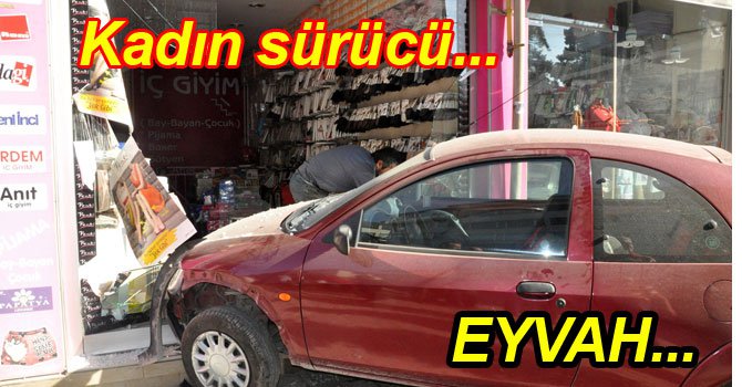 İsmetpaşa Caddesi’nde fren yerine gaza basan kadın sürücünün kullandığı otomobil iç çamaşırı dükkanına girdi. Kaza sırasında kaldırımda ve dükkanda kimsenin olmaması faciayı önledi.