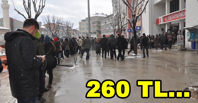 Üniversite okuyan öğrencilere verilen 260 TL’lik Kredi Yurtlar Kurumu bursu için bankaya akın eden öğrenciler metrelerce kuyruk oluşturdu. Bolu Abant İzzet Baysal Üniversitesi’nde (AİBÜ) eğitim gören öğrenciler, yeni yılın ilk bursunu alabilmek için bankaya akın ettiler. İzzet Baysal Caddesi üzerinde bulunan Ziraat Bankası’na koşan öğrenciler, paralarını çekebilmek için saatlerce kuyrukta bekledi. Metrelerce kuyruk akşam saatlerine kadar sürerken, öğrencilerin paralarını çekmeleriyle çile sona erdi.