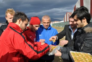 Konuşmaların ardından basın mensupları futbolculara ve teknik heyete baklava ikram etti. İkramın ardından futbolcular ilk idmanına çıktı.