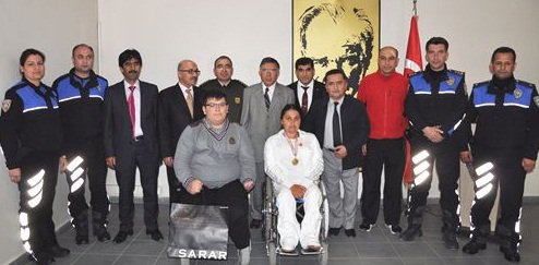 Aksaray'da düzenlenen 'Bedensel Engelli Okçuluk Salon Türkiye Şampiyonası'nda birinci olan Merve Nur Eroğlu ve 10'ncu olan Ömer Aşık, Bolu İl Emniyet Müdürlüğü tarafından yarım altınla ödüllendirildi.