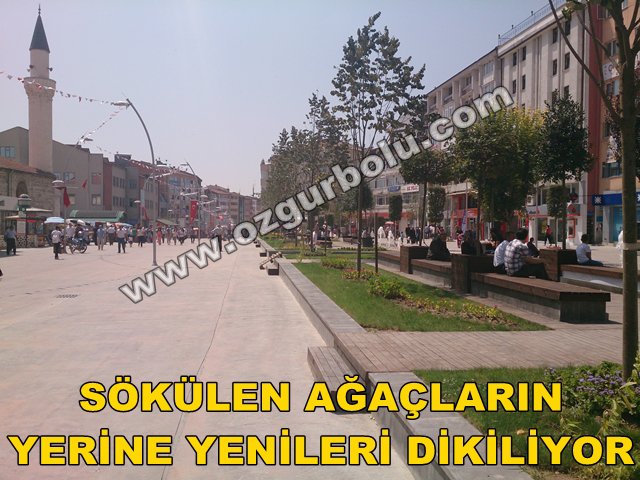 Bolu Belediyesi Park ve Bahçeler Müdürlüğü, İzzet Baysal Caddesi'nde kuruyan ağaçların yerlerine yeni ağaçlar dikmeye başladı. Kuruyan ağaçlar görevliler tarafından sökülerek, yerlerine çınar ağaçları dikildi. Görevliler, cadde de dikilen ağaçların büyük bir kısmının tuttuğunu belirterek, az miktarda ağacın tutmadığını, bu ağaçların yerlerine de ağaçlar diktiklerini söylediler. Görevliler, ayrıca peyzaj çalışmaları kapsamında tüm ağaçların etrafına çiçekler ektiklerini belirttiler.