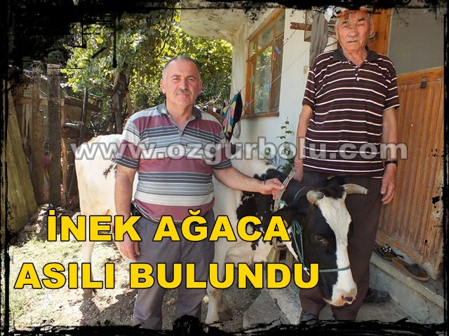 Mudurnu'da, Mehmet Duran'a ait kaybolan inek 15 gün sonra bulundu. Boynundaki zilin takılı olduğu ipin ağaca takılması nedeniyle asılı kalan hayvanın aç kaldığı görülürken, veteriner kontrolünün ardından ot ve su verildi.