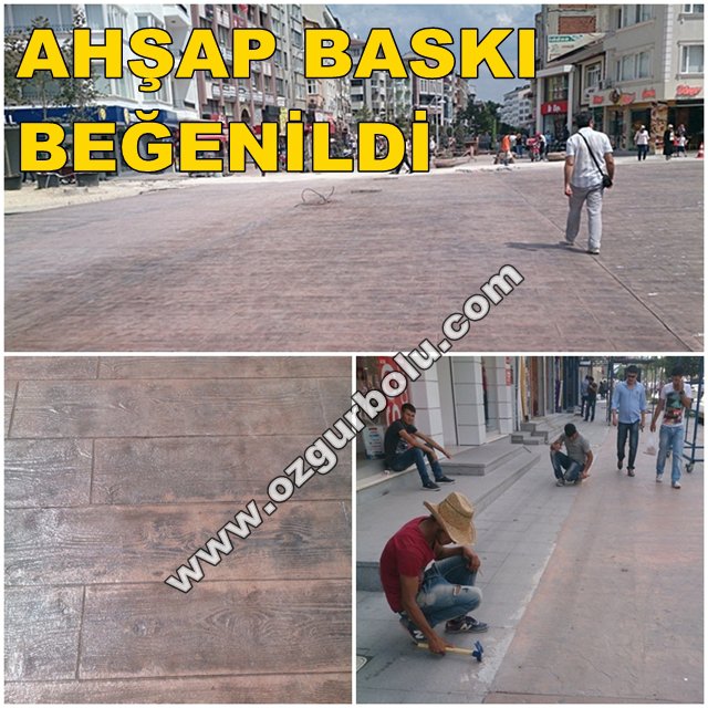 İzzet Baysal Caddesi'nde son rötuşlar yapılırken, cadde de yapılan taş baskının yerine Valilik Konağı'nın önündeki alana ahşap desenli baskı beton yapıldı. Ahşap desenli baskı beton daha beğenildi.