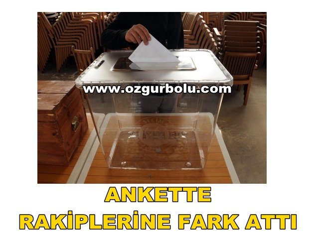 Alp Araştırma'nın Bolu'da 803 kişi ile yaptığı anketin sonuçlarına göre Bolu Belediye Başkanı Alaaddin Yılmaz muhtemel rakiplerine fark attı. Alaaddin Yılmaz, 803 kişiden 194 kişinin oyunu alırken, partisinden isimleri aday adaylığı için geçen Tahsin Akduman 11, Mücahit Kutlu 5 ve Fatih Metin 2 oy alabildi. CHP'nin aday adayları Mehtap Özcan Mısırlıoğlu 32, Cahit Çıngı 25, Yüksel Ceylan 23 oy alırken, MHP'den adaylık için ismi geçen Mustafa Ramazan 4, Eyüp Ahi 5 oy alabildi.