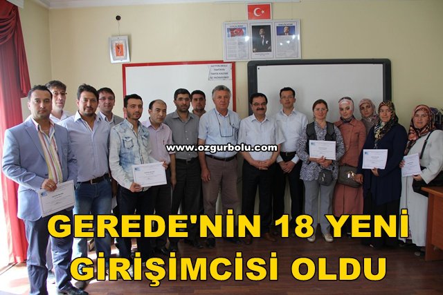 KOSGEB'in "Girişimcilik Destek Programı" kapsamında açtığı kursa katılan 18 kişi sertifikalarını aldı. Gerede Belediye Başkanı Ömer Baygın aldıkları eğitimle KOSGEB'in desteklerinden yararlanacak olan girişimcileri tebrik etti.