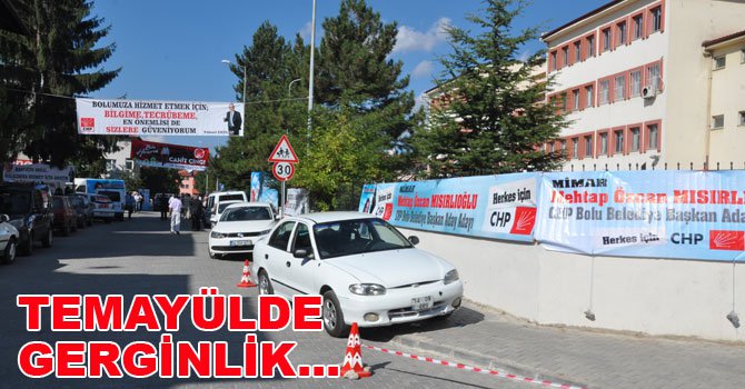 CHP’de yerel seçimler öncesinde Bolu Belediye Başkan adayını belirleyecek temayül yoklamasında sabah saatlerinden itibaren heyecan ve gergin hava doruk noktadaydı. Sabahın ilk saatlerinde 3 aday arasında yaşanan pankart gerginliği partililerine araya girmesiyle zor yatıştırıldı.