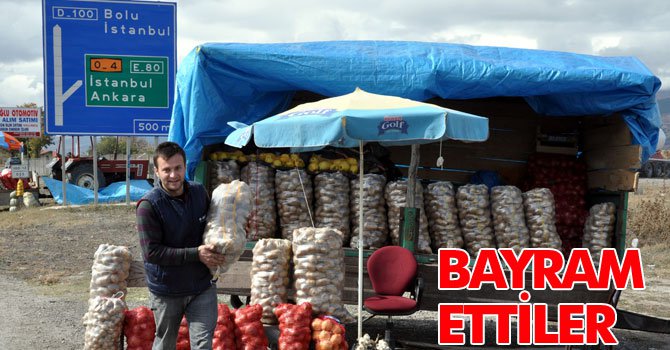 Bolu'da Kurban Bayramı tatili nedeniyle yol kenarlarında patates satan üreticiler satış bolluğu yaşarken, yol kenarında satış yapmanın yasaklanmasına ise tepki gösterdiler.
