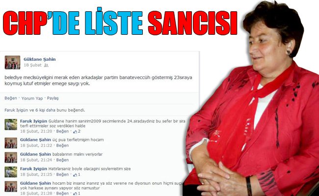 Yerel seçime girecek siyasi partiler Belediye ve İl genel Meclisi Üyelikleri için listelerini kamuoyuna açıkladılar. Ancak listelere giremeyenler veya son sıralarda bulunanlar tepki göstermeye başlarken, seçime 36 gün kala partilerin içinde liste karmaşası damgasını vurmaya başladı. Liste huzursuzluğu en çok sosyal medyaya yansırken, ilk liste tepkisi de CHP’den geldi.