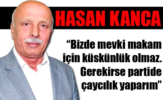 Her zaman AK Parti’nin hizmetinde olduğunu söyleyen Kanca, “Ben bugüne kadar partimizin değişik birimlerinde görev aldım. Bundan sonra da üzerimize düşen bir görev olduğu zaman her zaman elimi taşın altına koyarım. Bizim teşkilat anlayaşımız da mevki ve makamların önemi yoktur. Bana deseler ki şu an sana parti’de çaycı olarak ihtiyacımız var, onu da seve seve yaparım” dedi.