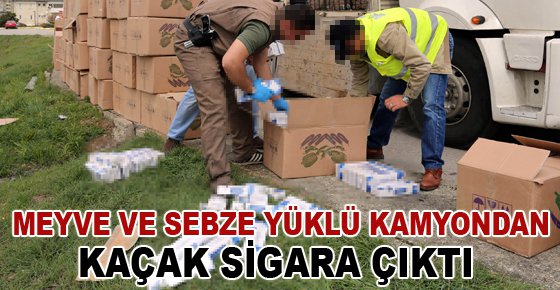 Bolu’da sebze ve meyve yüklü kamyonun kasasında yapılan aramada ürünlerin arasına gizlenmiş 50 bin paket gümrük kaçağı sigara ele geçirildi.