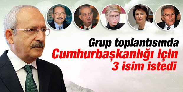 Fakat çıkışta gazetecilerin sorularını yanıtlayan Kılıçdaroğlu, toplantıda herhangi bir ismin gündeme gelmediğini söyledi. Kılıçdaroğlu'nun bu isimleri daha sonra milletvekillerinin cumhurbaşkanı adayı konusundaki tercihleri üzerinden değerlendirmeye alacağı öğrenildi.
