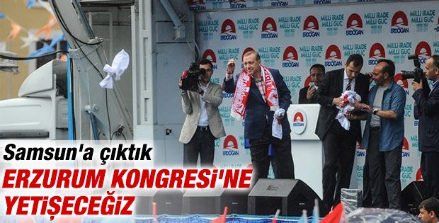 Başbakan Erdoğan, Samsun'un Canik Belediyesi Hizmet Binası Açılış Töreni'nde konuştu. Erdoğan, “Sizlerle muhabbete doyum olmaz. Fakat Tekkeköy'de bekliyorlar, aynı zamanda Erzurum bekliyor. Erzurum Kongresi'ne de yetişeceğiz." dedi.