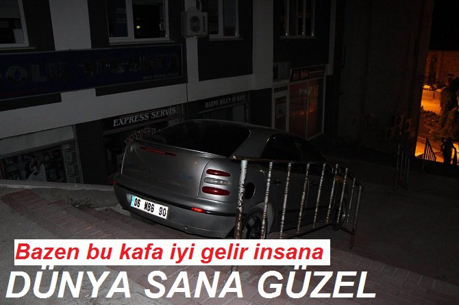 Bolu’da aşırı alkol alan bir sürücü Rahmi Otel’in önünden İzzet Baysal Caddesi’ne inen merdivenleri kullanamaya kalkınca olanlar oldu. Ne olduğunu anlayamayan sürücü merdivenlerin ortasında otomobili zor durdurdu.